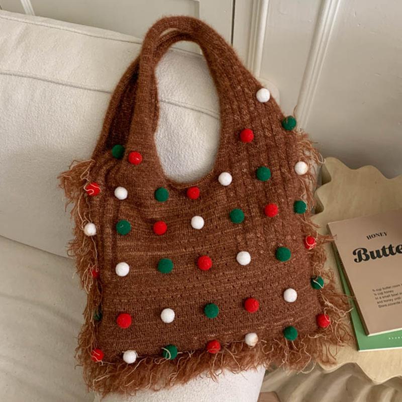 Damentasche: Stilvoll und lässig, Perlenbesetzte Ein-Schulter-Tasche, Stricktasche mit großem Fassungsvermögen