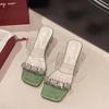 Neue silberne Kristall-Damen-High Heels, Sommer-Mode-Sandalen, dick Absatz Strass transparente Sandalen