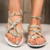 Böhmischer Stil Geflochtener Riemen Flache Sandalen für Damen Bedruckte Überkreuzband Römersandalen Frau Sommer Zehensteg Strand Sandalias Mujer