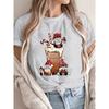 Women's Christmas Gnome and Santa Claus Pattern Short-Sleeve T-Shirt Casual Crew Neck Top Holiday Party Outfit Fun Print Shirt