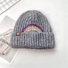 Warme und Ohrenschützende Wollmütze Neue Kreative Regenbogen-Pullovermütze Großer Kopfumfang Gesicht Zeigend Klein Gestrickte Mütze