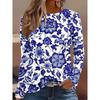 Blumenmuster 3D-gedrucktes Oberteil Lässige Langarm-Damen-T-Shirts - Weicher, mittelelastischer Polyesterstoff Frühling und Herbst Relaxed Fit Kleidung