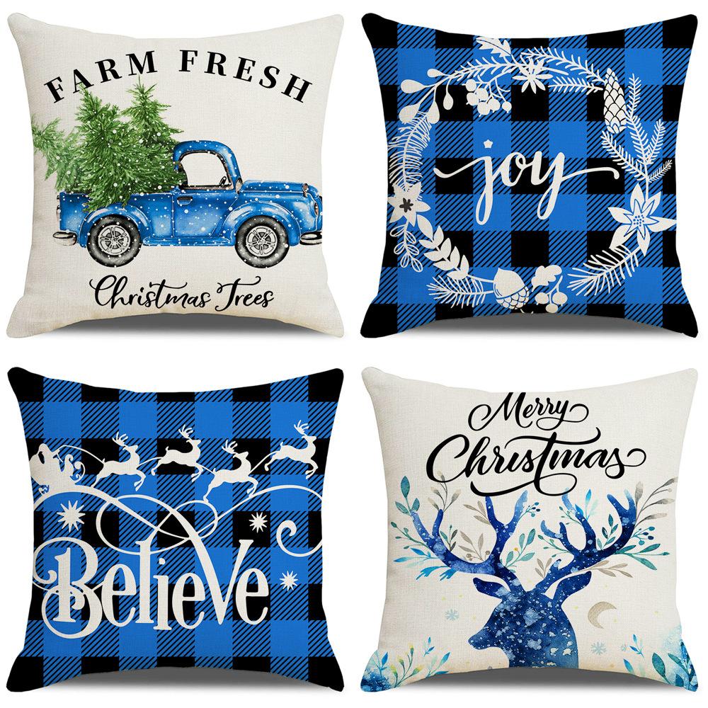 Leinen Kissenbezug Frohe Weihnachten Einfacher Karomuster Weihnachts-Kissenbezug Kissenbezug Zuhause Weiche Dekoration Kissenbezug