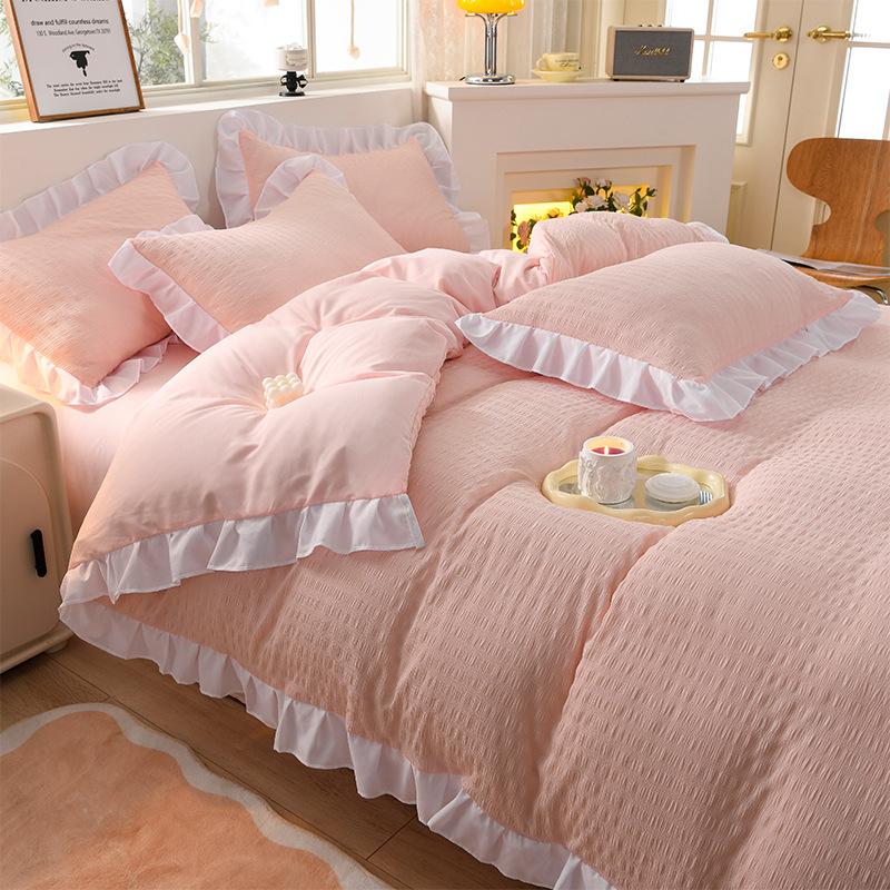 Reine Baumwolle Doppelgarn Bettwäsche Doppel Vier-teiliges Set Bettbezug Einzel-Wohnheim Bettlaken Dreiteiliges Set