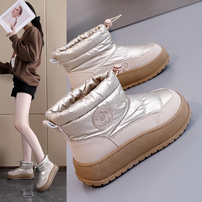 Damenmode Dicke Sohle Erhöhend Leicht Winter Warm Fell Eins Schneestiefel Gepolstertes Futter Rutschfest Lässig Sportlich Baumwollstiefel