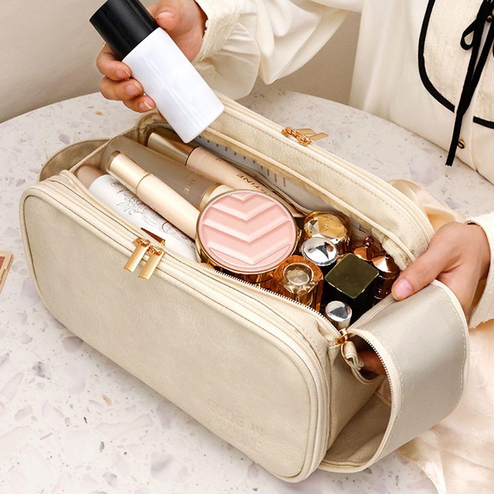 Luxurious Makeup Bag Large Capacity Travel Cosmetics Bag Leather Wash Bag Outdoor