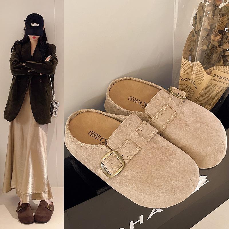 Dicke Sohle mit innerer Erhöhung, Pantoffeln mit Taschenkopf, Damen Herbst neu, Retro, lässig, zum Ausgehen, Boken Halbpantoletten, lässige Einzelschuhe
