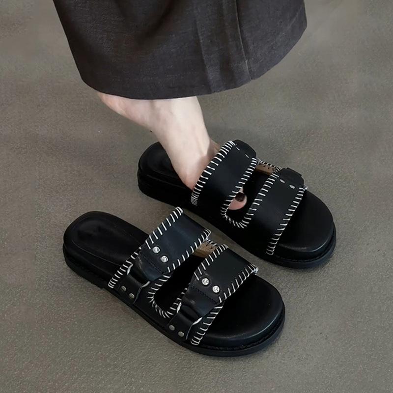 Schaffell-Version~ Neues Nietendesign mit Sandalen für Frauen, die es leid sind, im Sommer in Scheiße zu treten, Römersandalen mit niedrigem Absatz