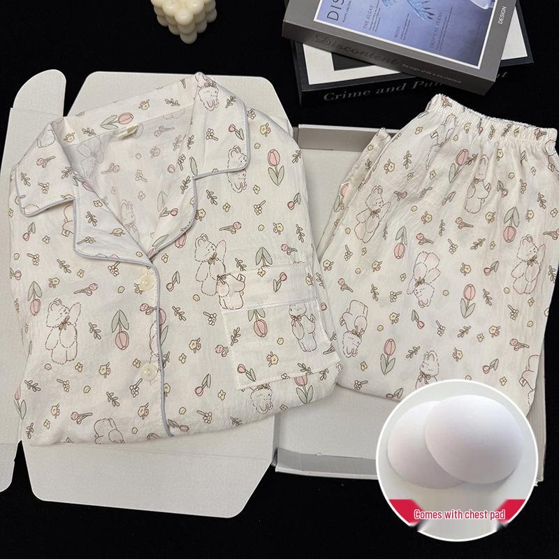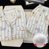 Damen Cartoon Pyjama-Set aus Wolkenbaumwolle mit Brustpolster - Langarm-Cardigan und Revers für Frühling und Herbst