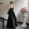 Ärmelloses Glockenblumen-Swingkleid im Hepburn-Stil in Schwarz mit Spaghetti-Trägern für den frühen Frühling