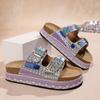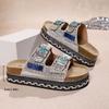 2025 neue Außenhandel Dicksohlen Hanfseil Doppelschnalle Strass Kork Strand-Slipper Übergröße Damenschuhe Europäischer und amerikanischer Stil