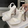 Eilyken Sommer Gladiator Eckige Zehe KRISTALL Hohe Absätze Damen Sandalen Plateau Schnallenriemen Partykleid Damenschuhe