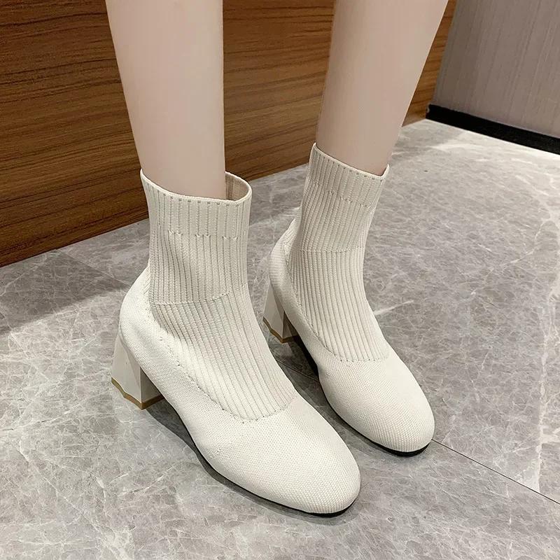 2024 Gestrickte Stiefeletten für Damen Herbst Runde Zehenpartie Dicke Sohle Slipper Freizeitschuhe Frau Leicht Rutschfest Plateau Botas Mujer