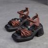 GKTINOO Retro Handgefertigte Sandalen 2025 Sommer Neu Echtleder Spleißen Bestickt Dicke Sohle Damenschuhe