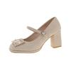 Damen Mary Jane Schuhe Blockabsatz Strass Perle High Heels Damen Kleid Party Eckige Zehenpartie Feenstil Zapatillas De Mujer