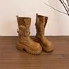 Klobige Damen Ritterstiefel Mode Gürtelschnalle Slipper Herbst Winter Plateauabsatz Mittelhohe Wadenstiefel Stiefeletten Zapatos De Mujer