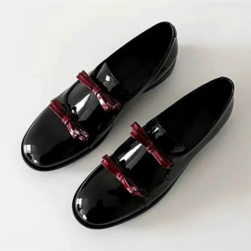 Mode Hohe Qualität Lackleder Schleife Designer Schuhe für Damen 2025 Frühling Quadratischer Absatz Runde Zehen Mary Jane Schuhe Luxus Pantoletten Slipper