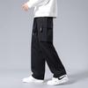 Herren Cargo Hose mit geradem Bein, Frühling/Herbst, Unifarben, Übergröße, Teenager Sport Windbreaker, Lässige lange Hose.