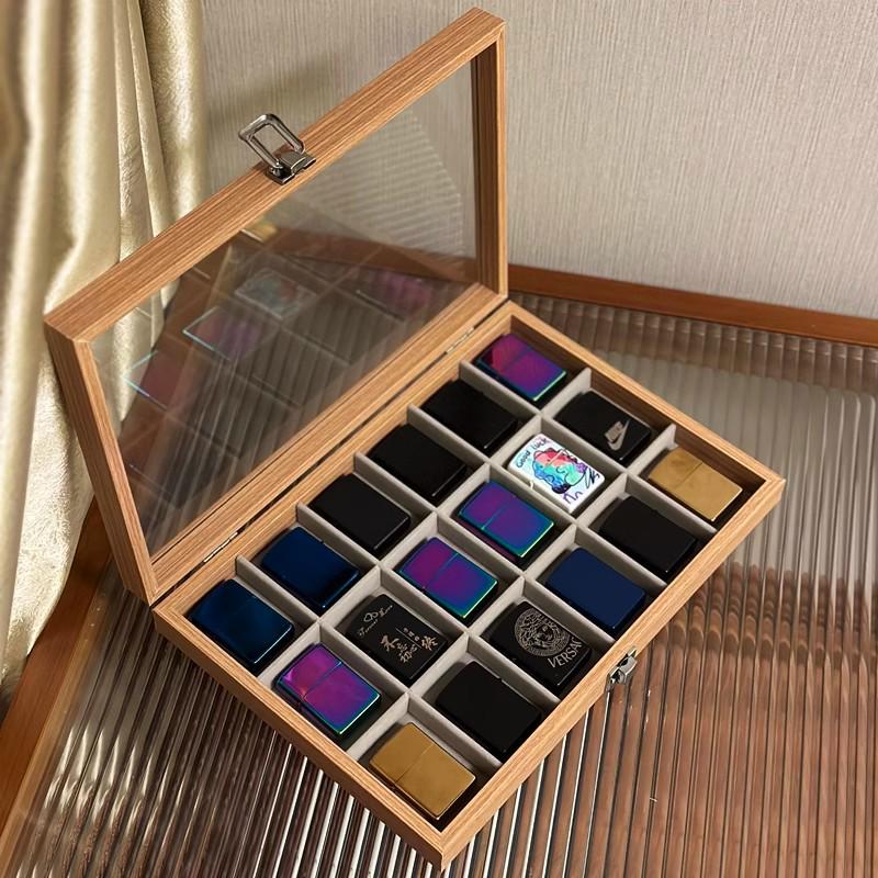 Transparent Glass Zippo Lighter Storage Box with Lid for Flint and Kerosene