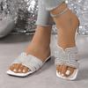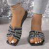 2025 Damen-Freizeitmode-Strass-Strand-Ein-Wort-Slipper mit flacher Sohle, coole Slipper, große Größen 36-43