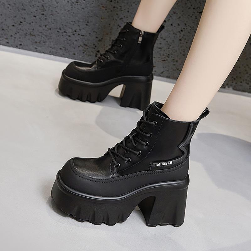 Dicksohlige Martin-Stiefel für Damen Herbst und Winter 2025 neue hochhackige dickabsatzige innen erhöhende mittelhohe Schaftstiefel Muffin vielseitig t