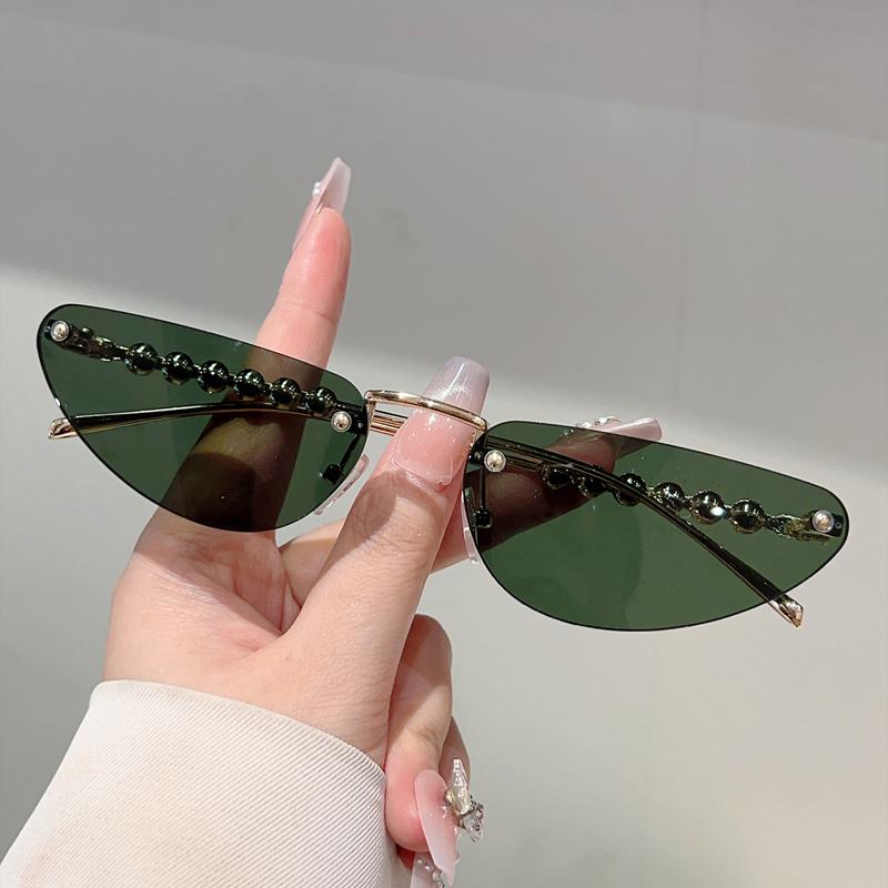 Rimless Triangle Sunglasses with Pearls Women New Fashion Casual Sun Glasses Trendy Sweet Brand Design Decor Shades