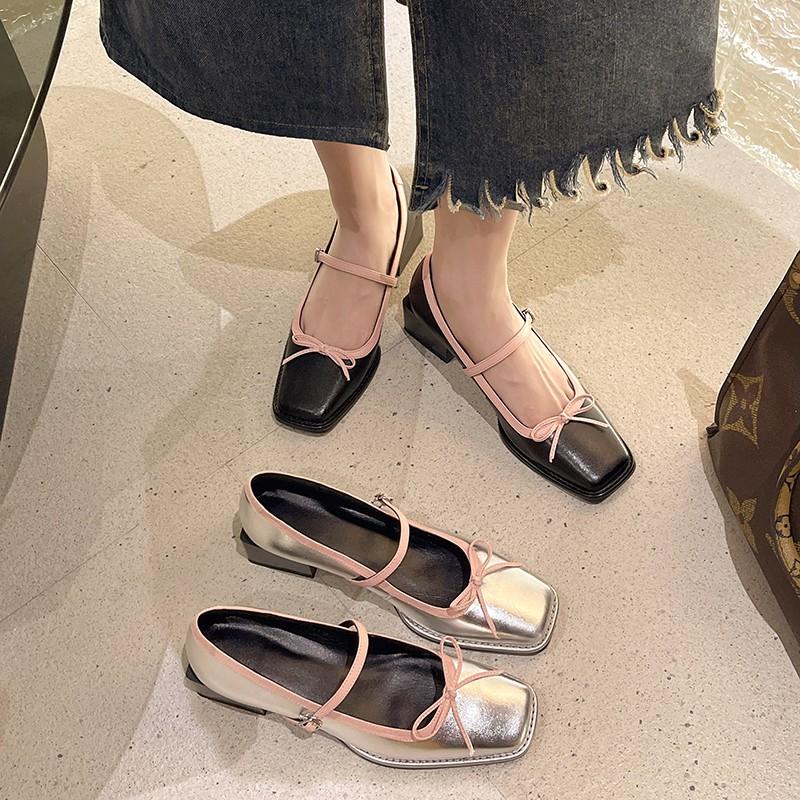 Neue Damen-Halbschuhe für Frühling und Herbst mit niedrigem Absatz, Schleife, flachem Ausschnitt, Schnalle, runder Spitze, Kawaii-Schuhe zapatos