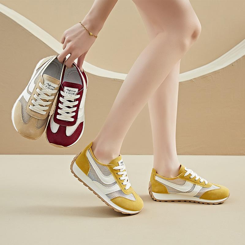 Gelbe deutsche Trainingsschuhe Damen Frühling und Sommer neu 2025 Retro atmungsaktives Mesh Fußzeigend kleine Sportliche flache Freizeitschuhe