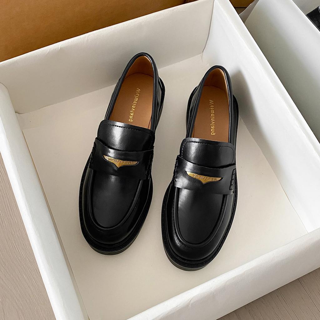 Weiwei girl 1083-1 schwarze kleine Lederschuhe Damen Plateau Ein-Pedal Einzelne Schuhe Dicke Ferse Retro Britische Slipper