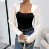 YYFS Damenmode Lässig Farbblockdruck Frühling Herbst Langarm Quadratischer Kragen Bodys
