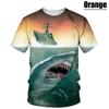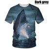 Hot New Men's T-Shirt with Large White Shark Print, Vintage Summer Casual Fashion, Crew Neck Short Sleeve Top