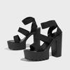 Mode Eilyken Sommermode Solide Plateau Square High Heels Damen Sandalen Offene Zehen Schmaler Riemen Freizeitschuhe Zapatillas De Mujer
