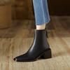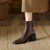 Mode Neue Frühling Spaltleder Westernstiefel Quadratische Zehenpartie Klobige Absatzstiefel für Damen Winter Kurzstiefel Prägnanter Damenstiefel Hohe Absätze