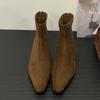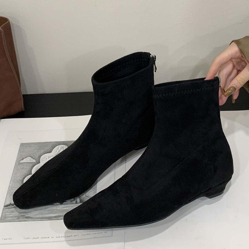 Mode Eilyken Winter Hohe Qualität Reißverschluss Damen Stiefeletten Spitzschuh Niedrige Absätze Vintage Freizeitschuhe