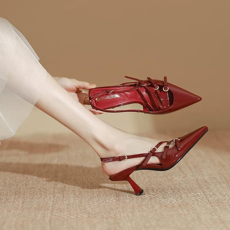 Modedesigner Schmaler Riemen mit Schnalle Spitzpumps Damen Sommer Sexy Dünne Absätze Hochzeit Bankett Kleid Mules Damenschuhe