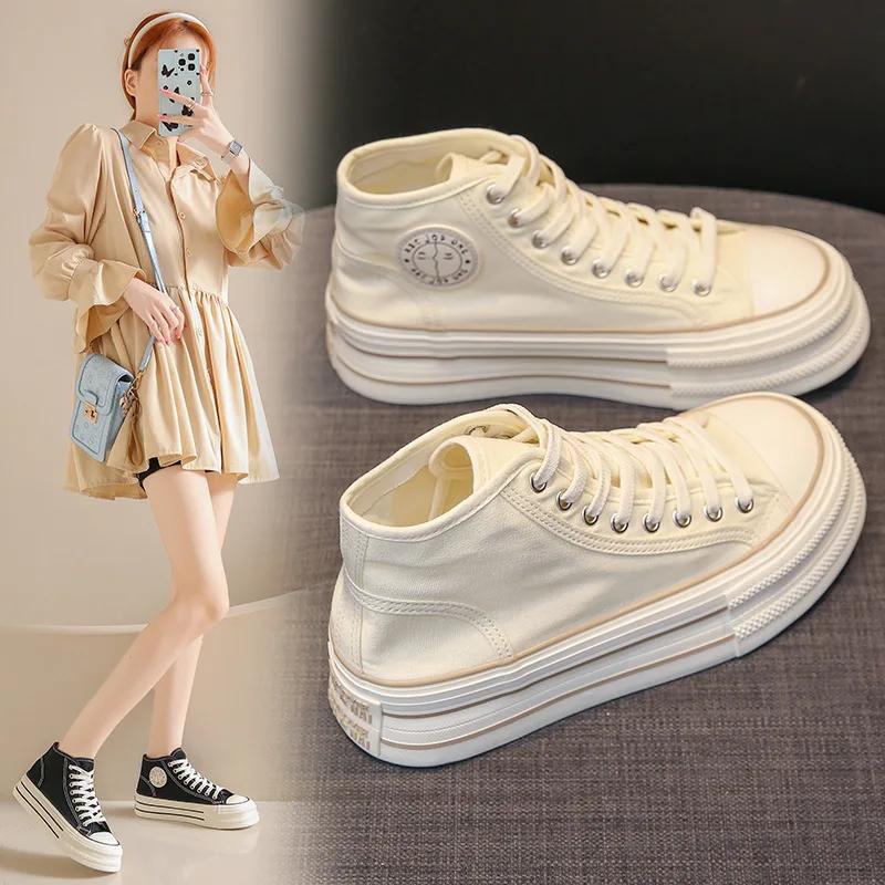 Modische Damen Canvas Schuhe High Top Lässige Bequeme Schuhe für Damen 2024 Plateau Vielseitige Sneaker Personalisierte Skate Schuhe