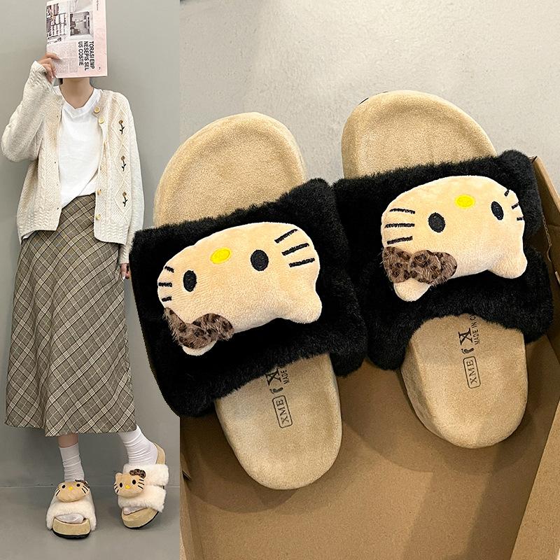 Dicke Sohlen Baumwollpantoffeln für draußen, niedliche Cartoon-Hausschuhe, warme flauschige Hausschuhe für Damen, neue Modelle Herbst und Winter 2025
