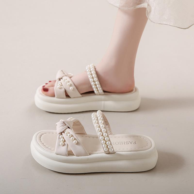 Hausschuhe Damen Sommer Feenwind tragen Mode Internet-Berühmtheit Perle dicker Boden lässig zwei Tragearten Strand coole Hausschuhe vielseitig