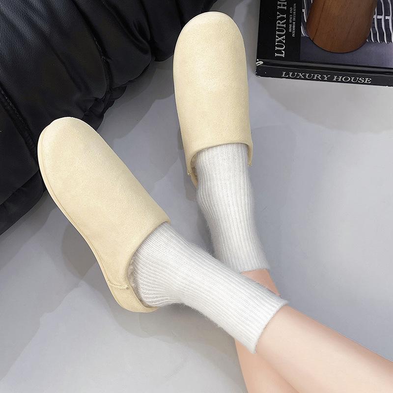 Dicksohlige, fellintegrierte Wollschuhe Damen 2025 Herbst und Winter neu Taschenkopf Halbschuhe lässige warme rutschfeste Baumwollpantoffeln