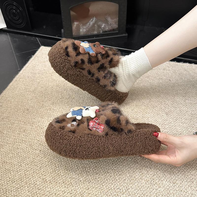 Internet-Berühmtheit Leopardenmuster Baumwollpantoffeln Damen 2025 Herbst und Winter neu Indoor Zuhause Fleece rutschfest Zehentasche flauschige Pantoffeln