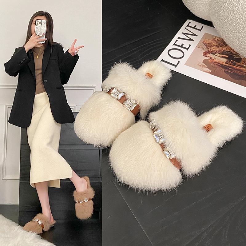 Flauschige Hausschuhe mit dicker Sohle für Damen-Oberbekleidung 2025 Frühling und Herbst neu Muffin gekreuzter Riemen dicke Sohle erhöhend weiche Sohle Haus