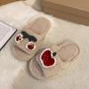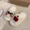 Niedliche kleine Apfel-Kirsch-Flauschpantoffeln Damenbekleidung 2025 Herbst und Winter Zuhause Rutschfest Warm Einwort-Baumwollpantoffeln