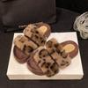 Herbst 2025 Retro Cross Fluffy Außenslipper Lässig Vielseitig Sanft Leopardenmuster Dicksohlige Flauschige Schuhe Baumwollslipper
