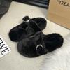 Fellartiger Leopardenmuster-Schnalle mit dicksohligen Bag-Head-Slippern für Damen-Oberbekleidung 2025 neue warme und bequeme vielseitige Baumwollpantoffeln