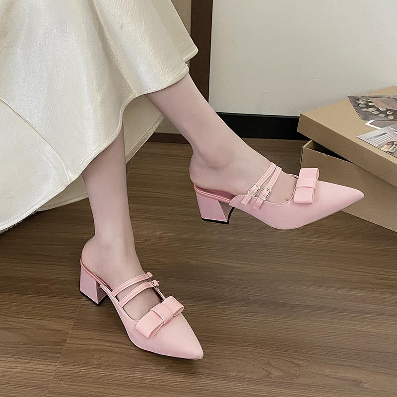Französische High Heels Sommer neuer Temperament 2025 Schleifenslipper Tasche Kopf Halber Feenstil Einzelne Schuhe Damenschuhe
