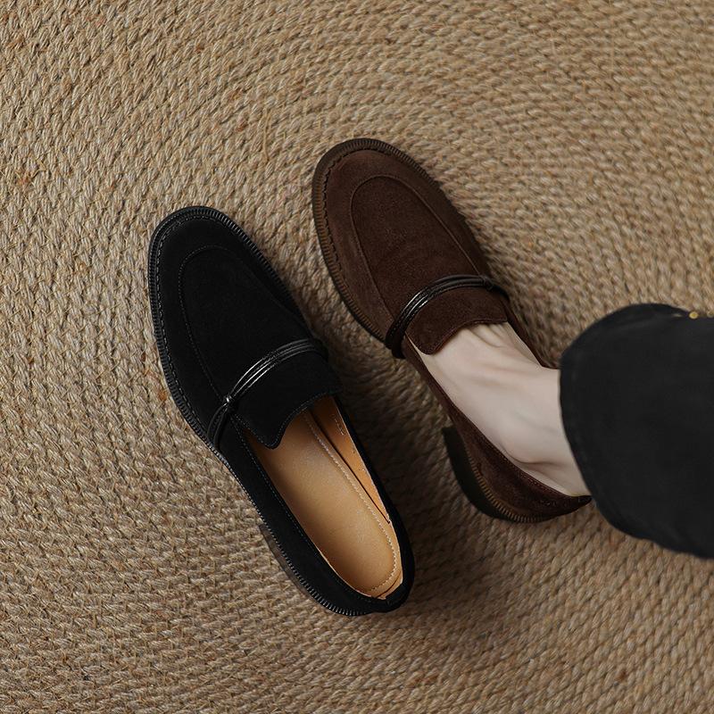 Fahren DNU Serie~ 2025 Frühling neue Kaschmir Samt Slipper Vollleder dicker Absatz Französische Samtschuhe