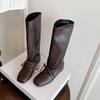 3,5CM Nische cool gutaussehend aber Kniestiefel 2025 Herbst und Winter neu eckige Zehen dicker Absatz Schnür-Ritterstiefel Damen