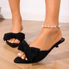 Mode Spitzschuh Flacher Ausschnitt Zehenfrei Design Schlanker Absatz Draußen Hausschuhe Sommer Schleife Hoher Absatz Cooles Wischen Übergröße