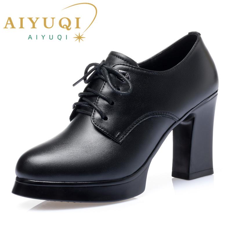 Mode AIYUQI Damen Frühjahrsschuhe Hoher Absatz 2024 Neu Echtes Leder Damenschuhe Dicker Absatz Plateau Pumps Mode Kleiderschuhe Damen