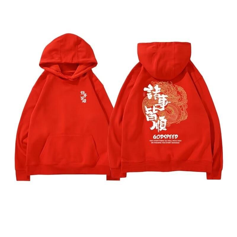 Men Oversized Hoodie Loose Chinese Retro Style Auspicious Dragon Print Couple Hoodies